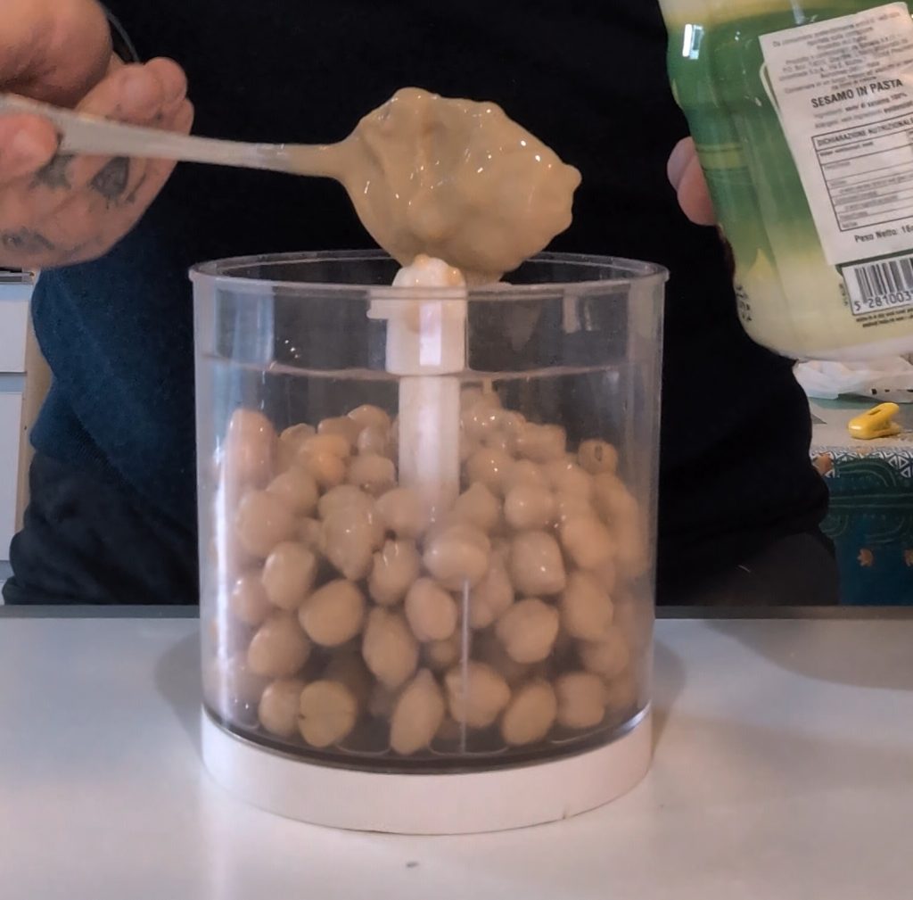 Fügen wir die Tahina hinzu, eine unverzichtbare Zutat für Hummus!