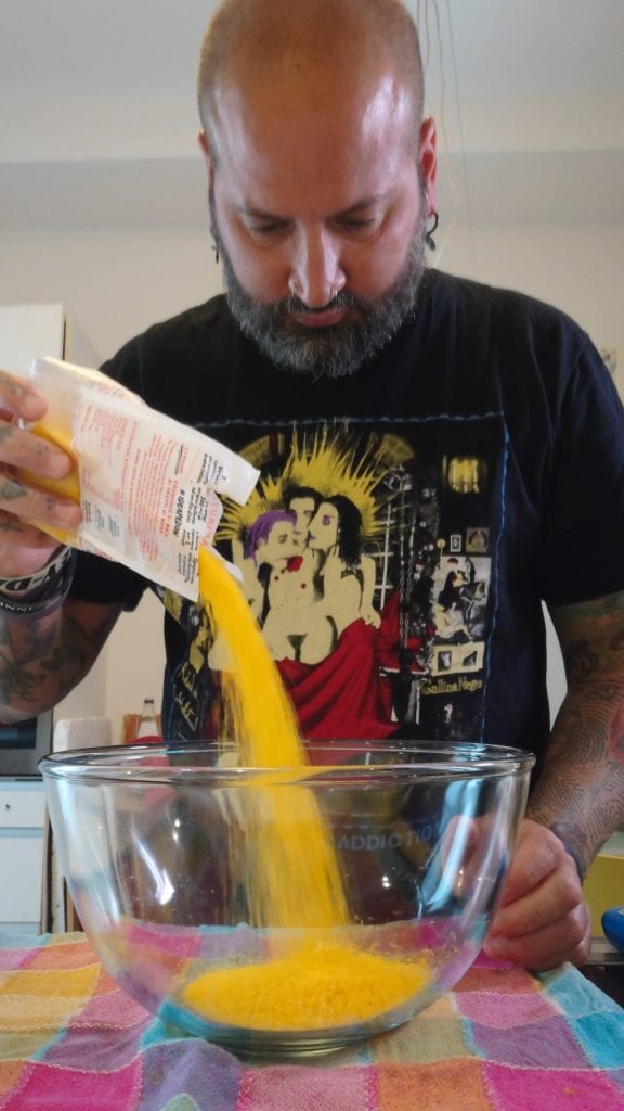 Gieße das leicht gesalzene kochende Wasser (oder Gemüsebrühe) über den Couscous gemäß der Packungsanleitung.