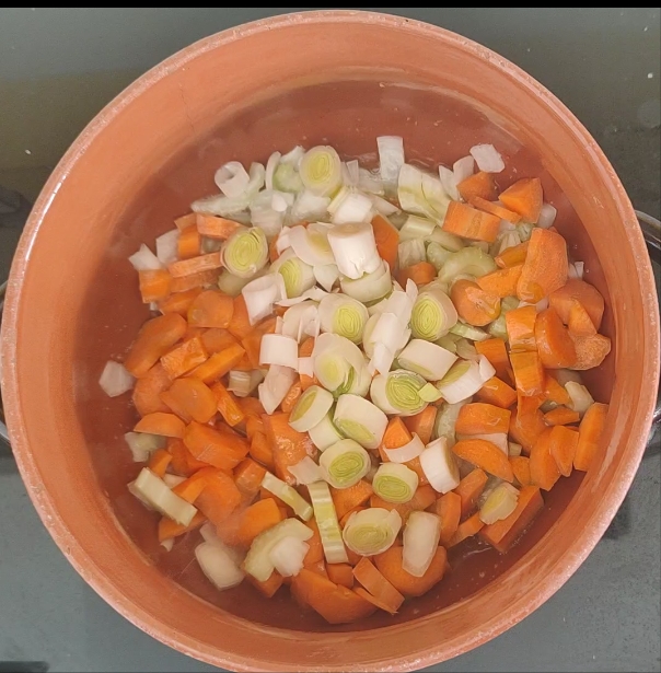 Ein Hauch Butter für einen intensiven Geschmack: Wir verwenden eine großzügige Menge Butter für das Soffritto, die unserer Suppe einen reichen und unwiderstehlichen Geschmack verleiht. Für das Kochen wählen wir einen Tontopf: Dieses Material ermöglicht eine langsame und sanfte Zubereitung, die die Aromen und Konsistenzen der Zutaten optimal zur Geltung bringt.