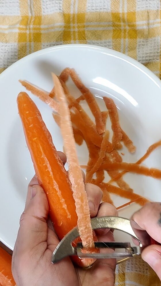 Dies ist die Version, die ich „Dinner Saver“ nenne: ein super schneller Teig, der sich praktisch von selbst zubereitet, indem die Karotte direkt mit den flüssigen Zutaten gemixt wird.