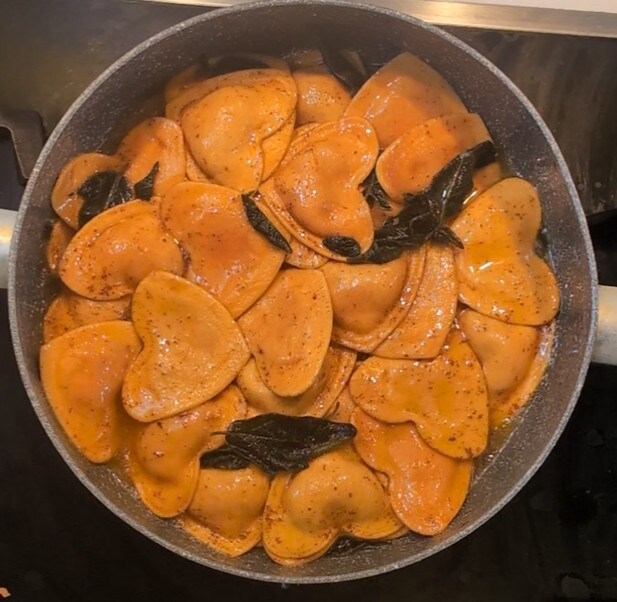 Ravioli mit Butter und Salbei mit Mozzarella-Herzen