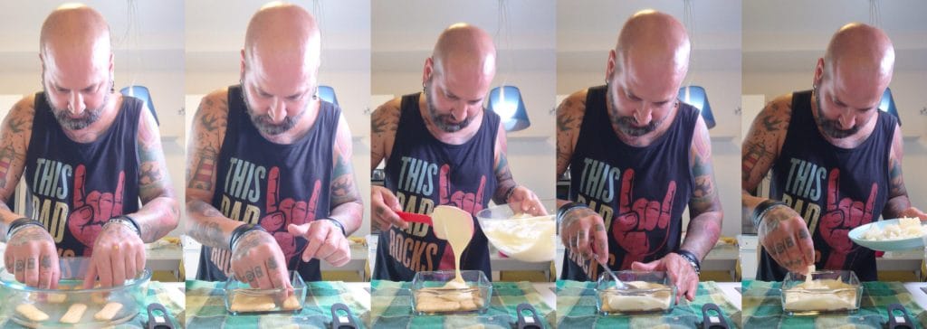 Die Pavesini sind sehr saugfähig. Um zu vermeiden, dass sie auseinanderfallen und das Tiramisu zu matschig wird, tauche sie nur sehr kurz in den Ananassaft ein, ein echtes „Eintauchen und Raus“.