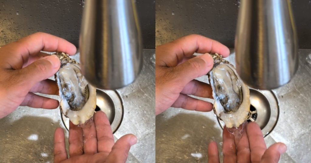• Nachdem du die Verpackung geöffnet hast, ist es wichtig, die Austern gründlich zu waschen, bevor du sie öffnest. Lass sie unter kaltem fließendem Wasser laufen und bürste jede Auster vorsichtig mit einer Küchenbürste ab, um eventuelle Rückstände von Erde oder anderen Verunreinigungen zu entfernen, die den Geschmack beeinträchtigen könnten.