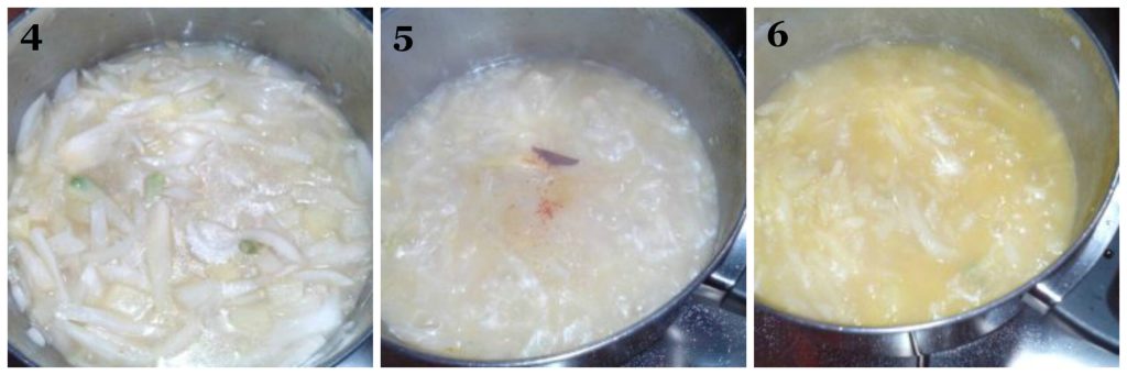 Salzen und pfeffern Sie nach Belieben; dann die Gemüsebrühe hinzufügen, bis alles bedeckt ist (4). Kochen Sie noch weitere 10 Minuten oder bis der Fenchel und die Kartoffeln weich und zart sind.Nach dieser Zeit den Safran hinzufügen (5/6) und gut umrühren.