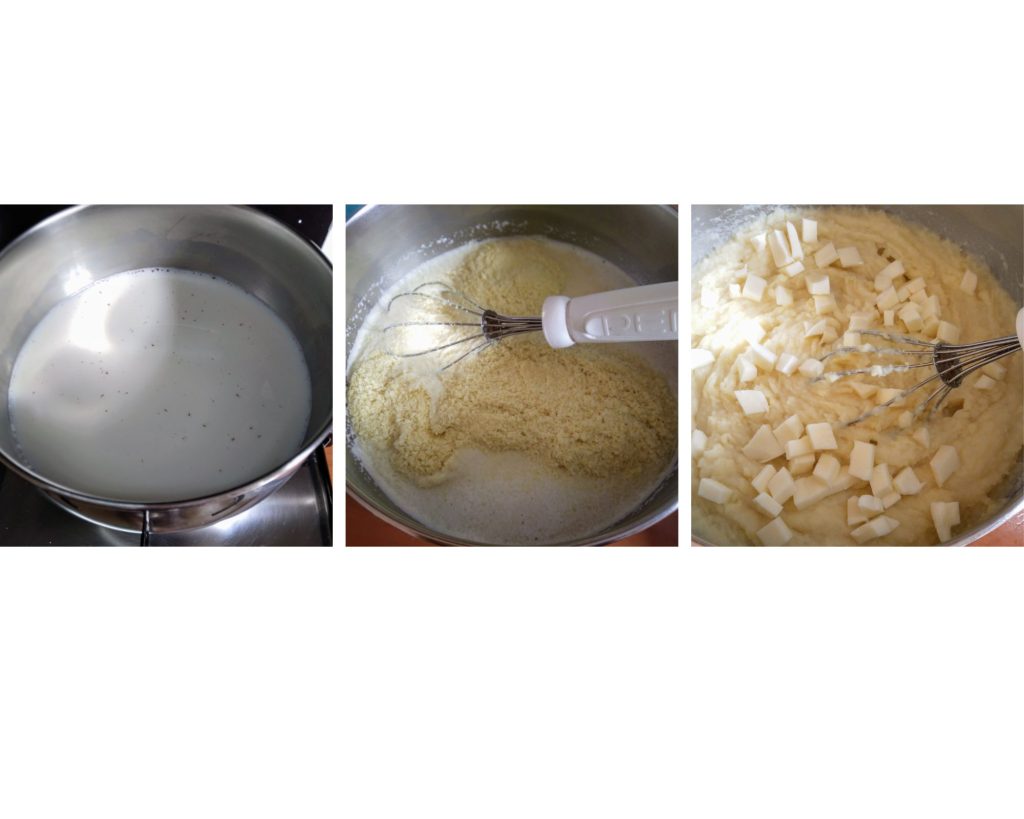 In einem Topf Milch mit Wasser und einer Prise Salz zum Kochen bringen.
