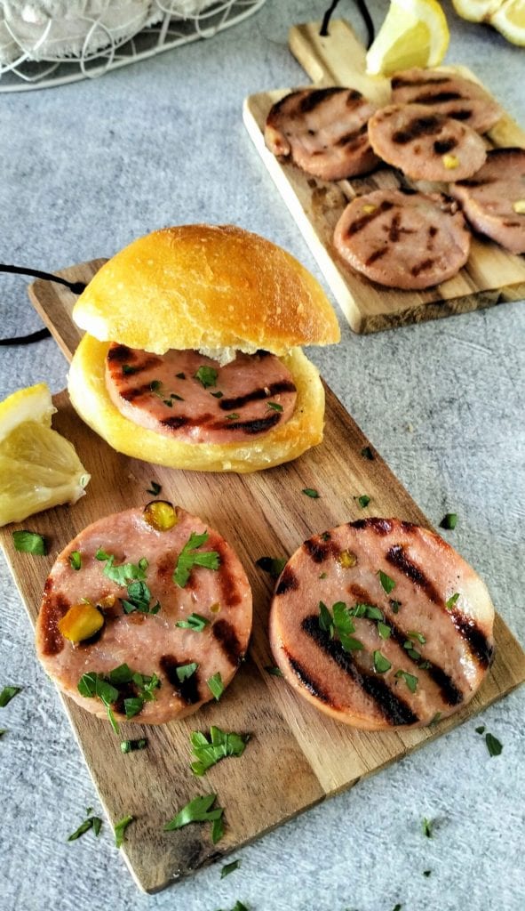 Zubereitung der gegrillten Mortadella mit Zitrone