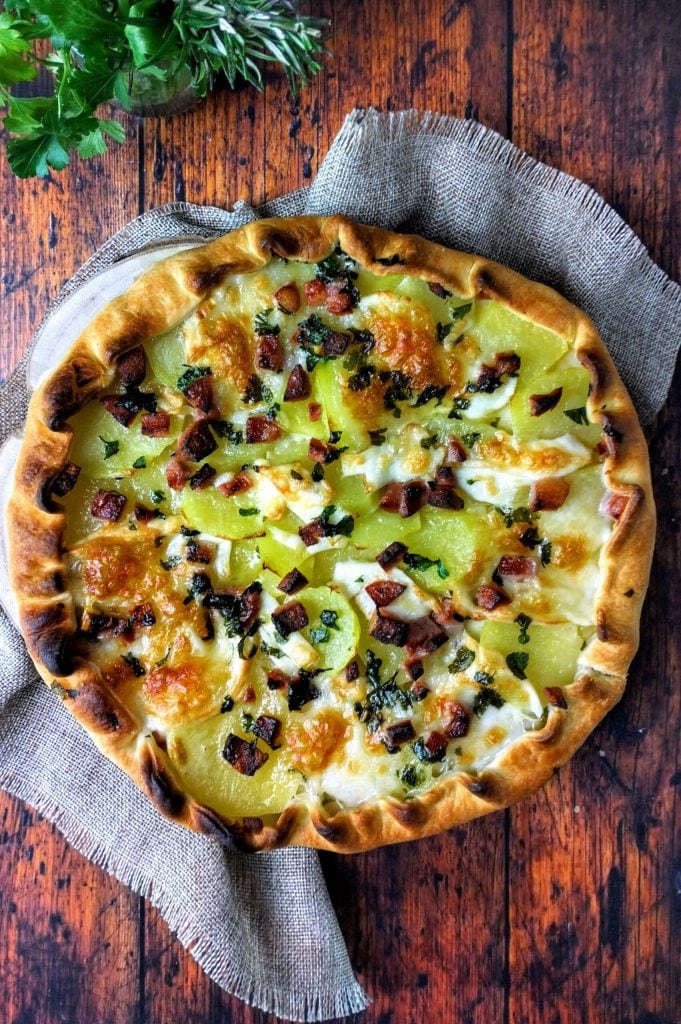 Die herzhafte Torte mit Kartoffeln, Mortadella und Provola ist eine köstliche und würzige rustikale Zubereitung.