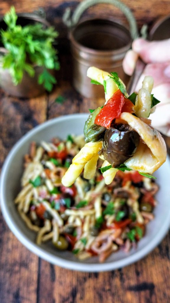Wenn Sie in die Aromen des Meeres eintauchen möchten, müssen Sie die Nudeln mit Kalmaren und kleinen Kraken zubereiten. Ihr betörender Duft versetzt Sie sofort ans Meer, mit dem salzigen Geruch, der die Nasenflügel kitzelt, dem Rauschen der Wellen, die den Strand umschmeicheln, und der Sonne, die sich auf dem klaren Wasser spiegelt.