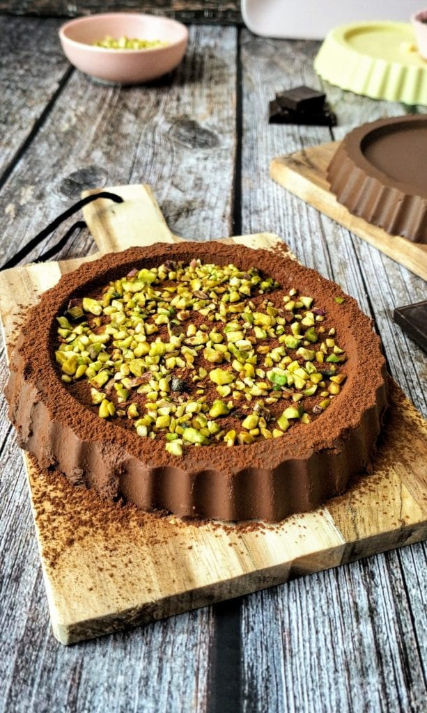 Sie können Ihre Küchlein auch mit einer Dekoration aus Kakaopulver und gehackten Pistazien servieren.