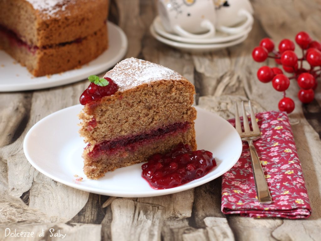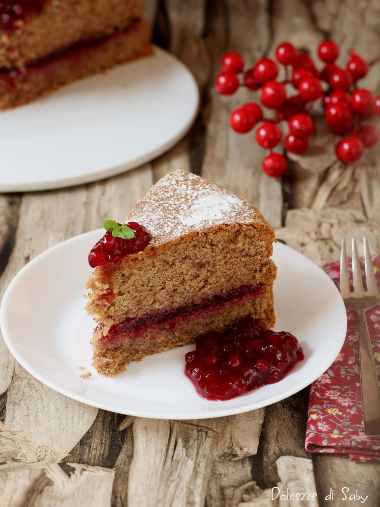 Wenn die Torte fertig gebacken ist, aus dem Ofen nehmen und mindestens ein paar Stunden gut abkühlen lassen. Schneiden Sie sie dann in der Mitte durch, um 2 Scheiben zu erhalten, und füllen Sie sie mit Preiselbeerkompott, seien Sie großzügig, denn der endgültige Geschmack wird Sie überraschen. Bestäuben Sie sie dann mit Puderzucker und servieren Sie Ihre Buchweizentorte mit weiterem Preiselbeerkompott und Sahne oder einfach mit einem dieser beiden Zutaten.