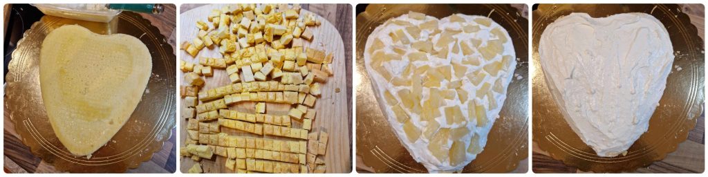 Für die Mimosen-Torte mit Ricotta und Ananas habe ich eine Herzform von 20 cm benutzt. Aber Sie können jede Form von 20-22 cm verwenden.