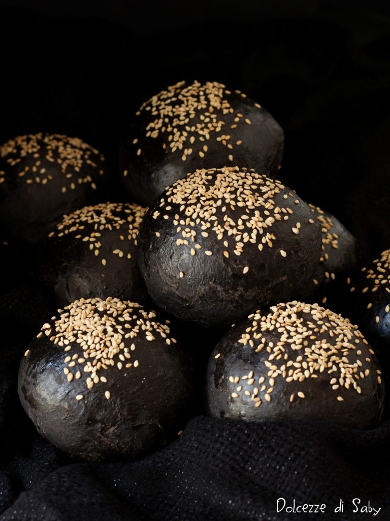 Nach dieser Zeit schlagen Sie das Eigelb auf, fügen 2 Esslöffel Milch hinzu und bestreichen Ihre schwarzen Burger. Dann mit Sesamsamen bestreuen und ca. 30 Minuten im vorgeheizten Backofen bei 180° backen. Sobald Sie sie aus dem Ofen geholt haben, lassen Sie Ihre schwarzen Burger gut abkühlen, bevor Sie sie schneiden und füllen.
