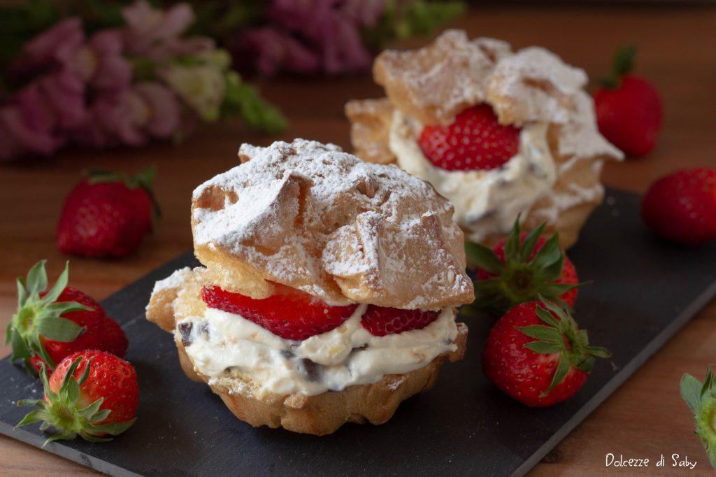 Heute möchte ich euch ein sizilianisches Dessert namens Türkenköpfe und Mohrenköpfe vorstellen. Es wird erzählt, dass es nach einer Schlacht zwischen Normannen und Sarazenen zubereitet wurde, und der Nachtisch entstand, um den Turban der Letzteren zu erinnern. Es handelt sich um große Brandteigkrapfen gefüllt mit Ricotta, denen ich auch Erdbeeren hinzugefügt habe. Ich gebe zu, dass die Creme die gleiche wie bei den sizilianischen Cannoli ist, aber die Kombination mit Erdbeeren macht diese Türkenköpfe noch spezieller, frisch und köstlich. Das Rezept für meine Brandteigkrapfen findet ihr HIER oder wenn ihr wenig Zeit habt, könnt ihr sie auch fertig kaufen.