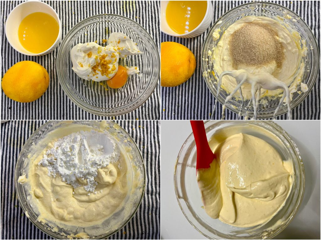 • Gieße in eine rechteckige Form, die mit Backpapier ausgelegt ist, und glätte sie, meine ist 20×25 cm. Beiseitestellen und die Creme zubereiten.