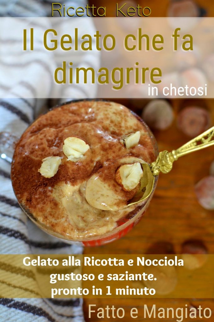 Heute bereiten wir das Eis für die Keto-Diät mit Haselnuss-Geschmack zu. Ideal für den Sommer, aber nicht nur dann. Die Konsistenz dieses Eises ist bereits cremig, ohne dass es im Gefrierschrank aushärten muss: Verwende einfach sehr kalte Zutaten und voilà, das Eis ist fertig — mit Hilfe einfacher elektrischer Rührbesen. Es ist ein Eis ohne Eismaschine, ohne Kristallzucker, ohne Milch, ohne Stabilisatoren oder Emulgatoren, ohne Eier. Daher basiert es auf einfachen Zutaten, ist im Handumdrehen zubereitet und quasi „zubereitet und gegessen“: nur Kokossahne, Ricotta und Haselnüsse oder Haselnusspaste. In wenigen Sekunden fertig, schmackhaft und sättigend. Super nahrhaft, eine Bombe für die ketogene Diät. Ein Snack mit minimalem Kohlenhydratanteil, nur 5,6 g und ganze 23,5 g guter Fette. Der Keto-Snack, der dir beim Abnehmen hilft.