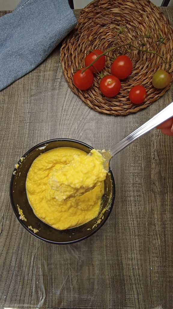 In einer größeren Schüssel die Ricotta mit einer Gabel bearbeiten, bis eine weiche und homogene Masse entsteht.