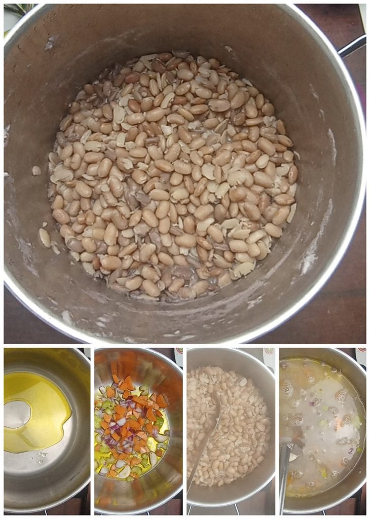 • Wenn die Bohnen fertig sind, nehmen Sie einen großen Topf und braten Sie das Gemüse-Soffritto an.