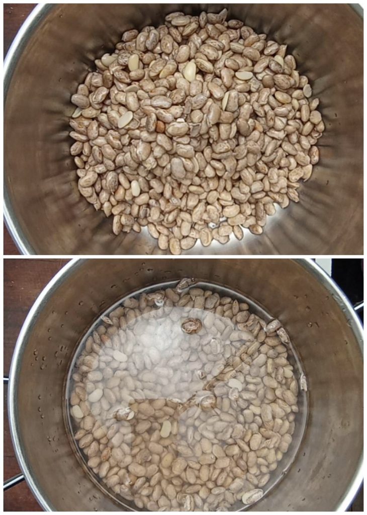 • Am Ende der Kochzeit, für ein cremigeres Ergebnis, können Sie wie ich ein Drittel der gekochten Bohnen mit einem Stabmixer oder einem Mixer pürieren.