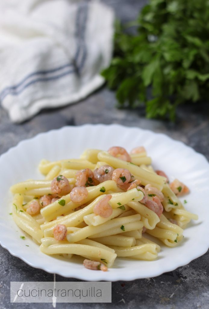 Caserecce mit Garnelen, Butter und Limoncello, ein einfaches, schnelles und leckeres Hauptgericht, perfekt für jede Gelegenheit.
