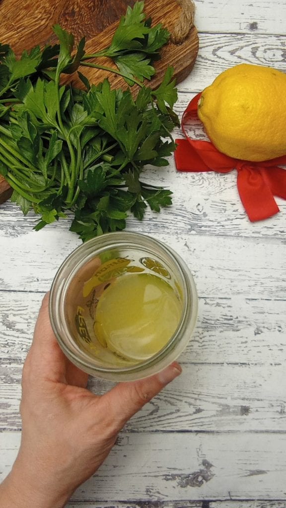 Füge die frisch gehackte Petersilie hinzu, wenn die Flamme aus ist.