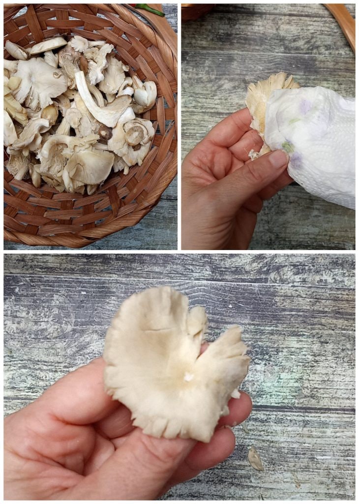 • Um die gemischten Pilze in der Pfanne mit Knoblauch und Chili zuzubereiten, reinigen Sie zuerst die Pilze gut mit einem angefeuchteten Blatt Küchenpapier.