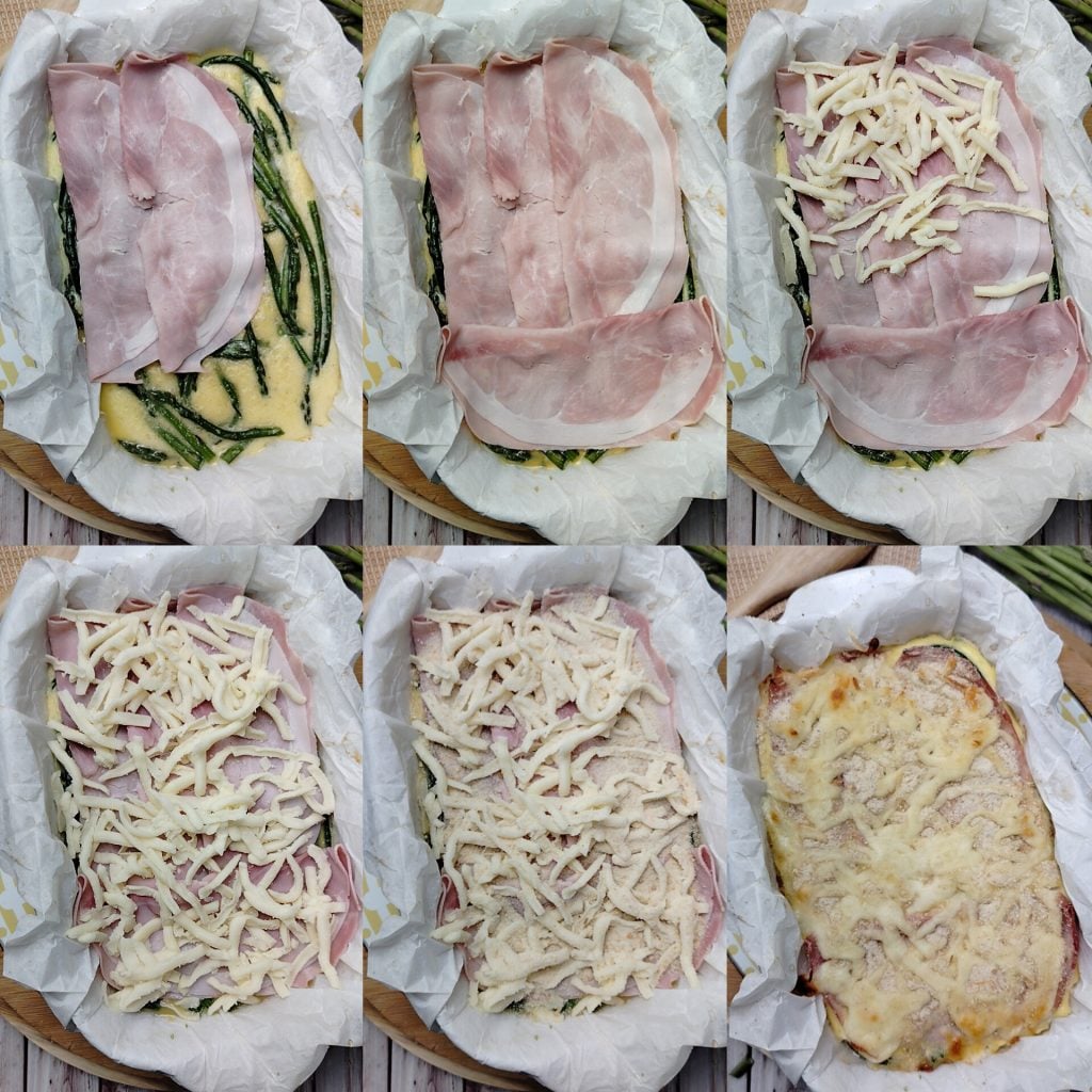 Herzhafte Torte ohne Mehl mit Spargel und gekochtem Schinken