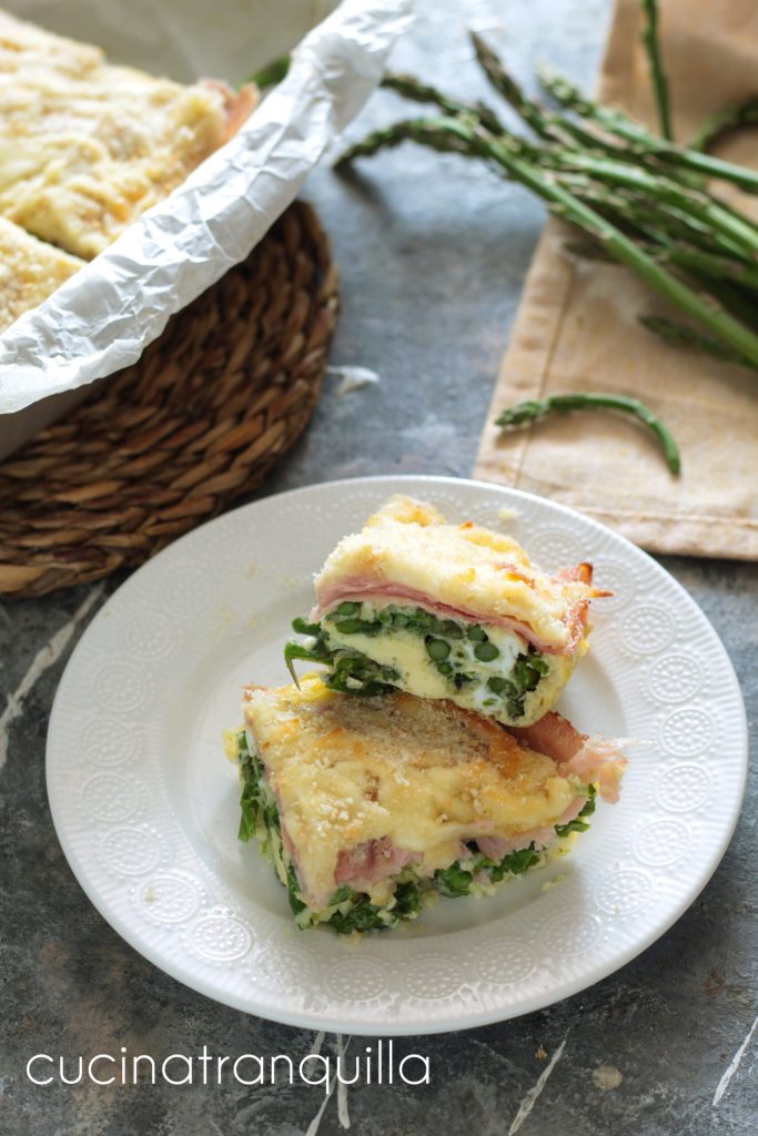 Ein Rezept, das anders ist als die üblichen, ein perfektes rustikales Gericht auch für ein Picknick, Herzhafte Torte ohne Mehl mit Spargel und gekochtem Schinken, ein sehr einfaches saisonales Rezept.