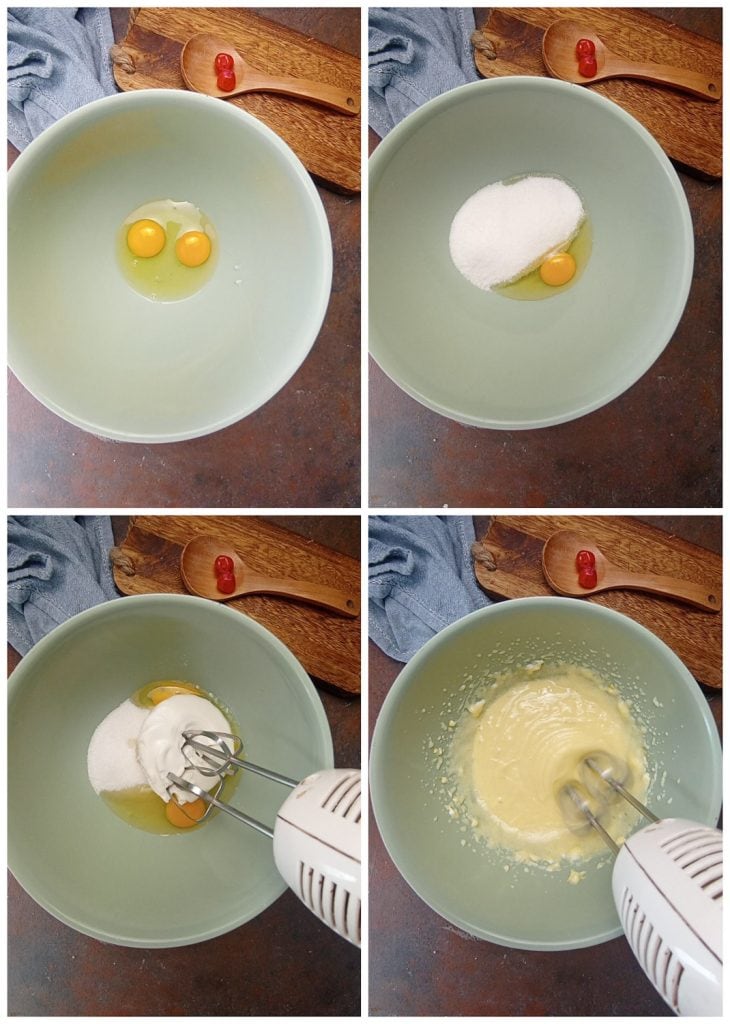 Es ist nicht notwendig, die Zutaten getrennt zu verarbeiten, sondern eine einfache Schüssel reicht aus und die elektrischen Schneebesen werden nur benötigt, um sie schneller zu verarbeiten. Tatsächlich können Sie auch ein einfaches Rezept verwenden, um die Zutaten zu vermischen.