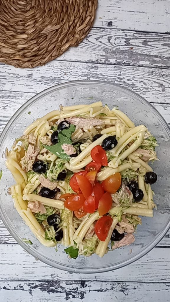 Kalter Nudelsalat mit Thunfisch und Zucchini, nur mit dem Kochen der Nudeln, ein einfaches und schnelles Rezept, sehr appetitlich, ideal für jede Gelegenheit.