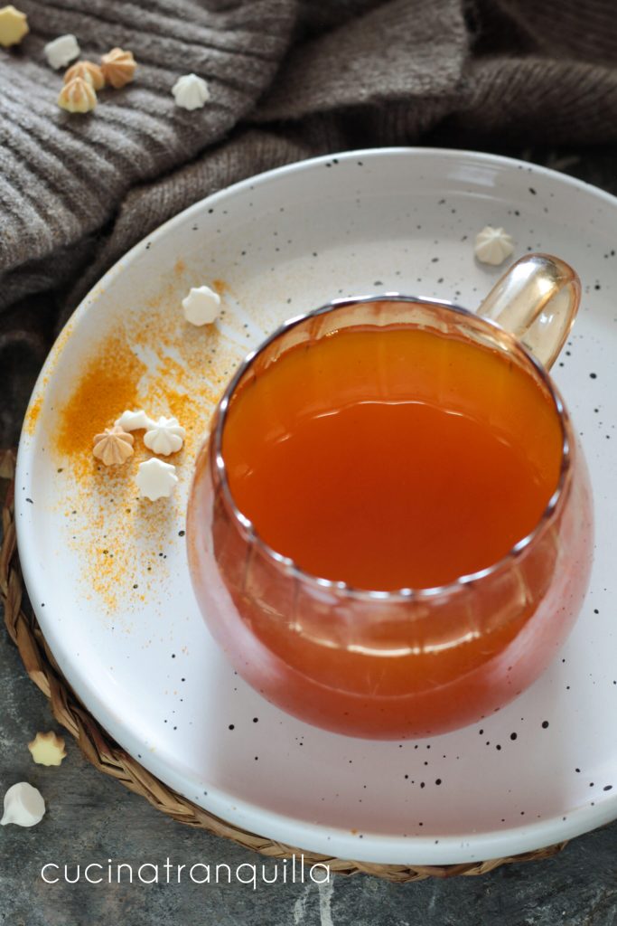 Kurkuma-Tee mit schwarzem Pfeffer und Honig, ein köstlicher Aufguss, perfekt, um die saisonalen Beschwerden mit drei recht gängigen Zutaten, die in unseren Vorratskammern vorhanden sind, zu bekämpfen. Kurkuma ist mittlerweile ein Produkt, das ich oft in der Küche verwende, um Suppen und Fleisch zu bereichern, aber oft findet man es auch in einigen meiner ersten Gänge. Honig ist mittlerweile unverzichtbar, besonders in der Winterzeit, um meine heißen Getränke zu bereichern. Und in diesem Rezept finden wir die Zugabe von schwarzem Pfeffer, der unserem Körper hilft, Kurkuma aufzunehmen. Hier unten lasse ich dir einige Rezepte, um deine eigenen hausgemachten gesunden Getränke herzustellen, während ich am Ende des Rezepts die häufigsten Fragen zu dieser Art von Rezepten beantworte.