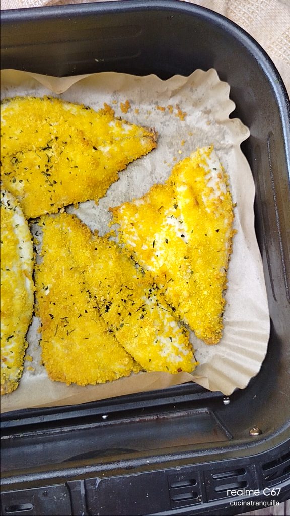 Luftgebackenes gratiniertes Doradenfilet, ein einfaches und schnelles Rezept für diejenigen, die nur wenig Zeit für die Küche haben, aber nicht auf die Leichtigkeit und den Duft eines Fischgerichts verzichten möchten. Für die Panade können Sie das Paniermehl Ihrer Wahl verwenden. Ich habe es mit Kurkuma gewürzt, aber Sie können es auch schnell selbst zu Hause zubereiten, indem Sie altes Brot ein paar Minuten im Ofen oder in der Heißluftfritteuse rösten und dann im Mixer mahlen, mit einer Prise Salz oder den Gewürzen Ihrer Wahl. Unten lasse ich Ihnen einige Rezepte für die Heißluftfritteuse und am Ende des Rezepts beantworte ich die häufigsten Fragen.