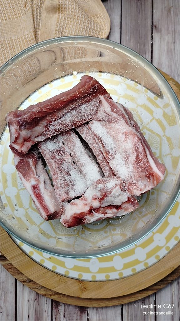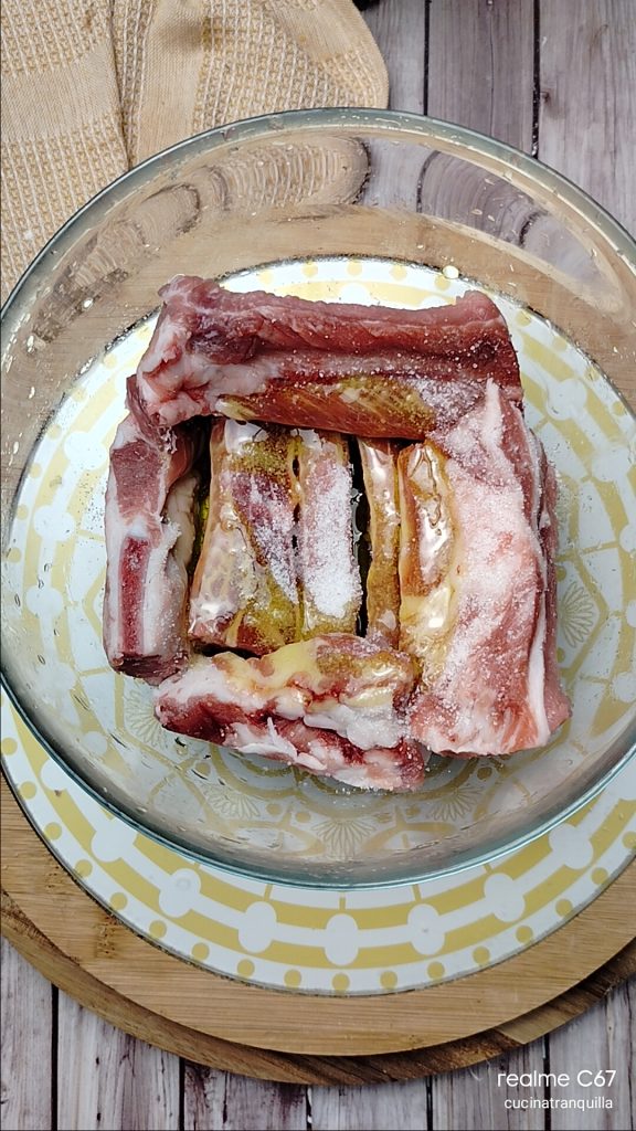 • Um die mexikanischen Schweinerippchen im Heißluftfritteuse zu machen, legen Sie zuerst die Rippchen in eine große Schüssel und bereiten sie für die Marinade vor.