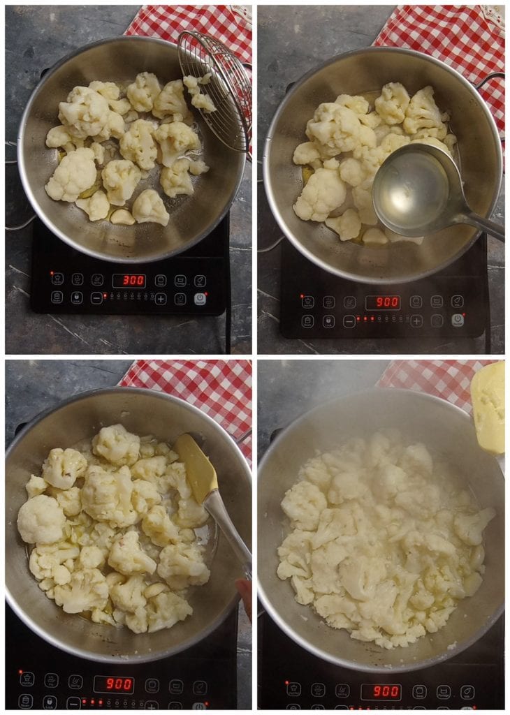 In der Zwischenzeit fahre mit dem Kochen des Blumenkohls fort.