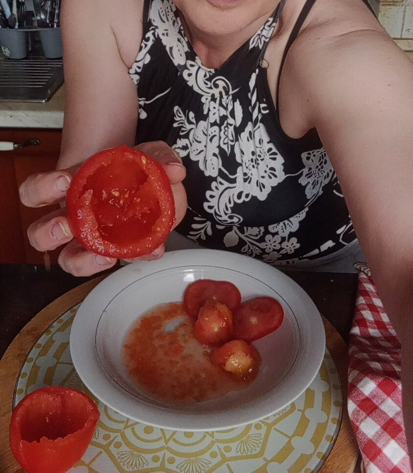 Für ein optimales Ergebnis empfehle ich, die Tomaten zu reinigen und in einer Schüssel mit einem Sieb abtropfen zu lassen, ohne das Fruchtfleisch.