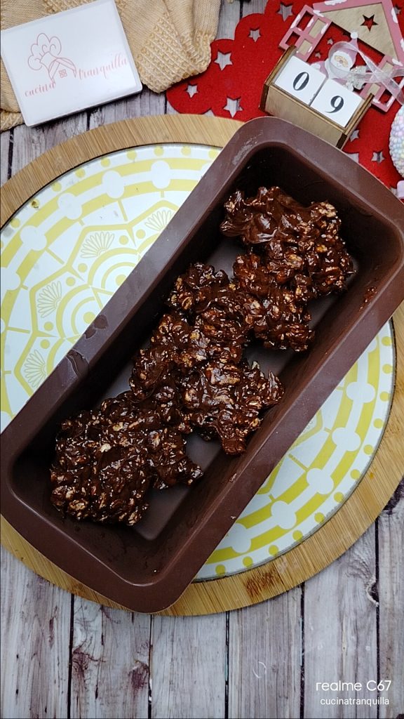 Nougat mit dunkler Schokolade und gepufftem Dinkel, eine einfache und auch als Geschenk perfekte Idee. Es wird in wenigen Schritten zubereitet und erfordert ein Minimum an Kochzeit, nämlich das Schmelzen der Schokolade, das in der Mikrowelle wie in meinem Rezept oder im Wasserbad erfolgen kann. Für die Herstellung des Nougats habe ich eine weiche Silikonform verwendet, die kein Backpapier benötigt. Die Größe der Form beträgt 24 cm x 10 cm (gemeint ist das Fassungsvermögen des Produkts, das für uns interessant ist). Wie kam mir diese Idee? Einfach weil fast alle im Handel erhältlichen Nougats Mandeln enthalten und ich leider allergisch gegen diese Nussart bin. Daher dachte ich, ich mache eine einfache und köstliche Version ganz nach meinem Geschmack, mit einem Kern aus Haselnusscreme und Dinkel. In der Beschreibung finden Sie die genauen Gewichte, die für mein Nougat erforderlich sind, unten lasse ich Ihnen andere Weihnachtsdesserts, während ich am Ende des Rezepts die häufigsten Fragen beantworte.