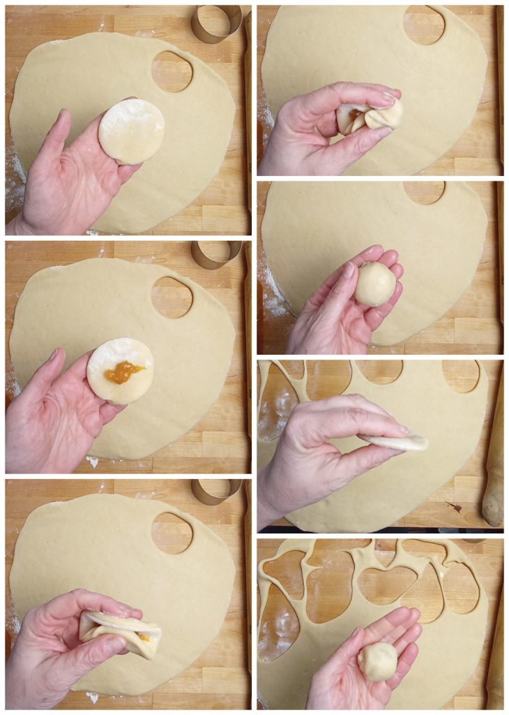 Drücken Sie die Ränder gut zusammen und formen Sie dann Kugeln, indem Sie sie zwischen den Händen rollen.