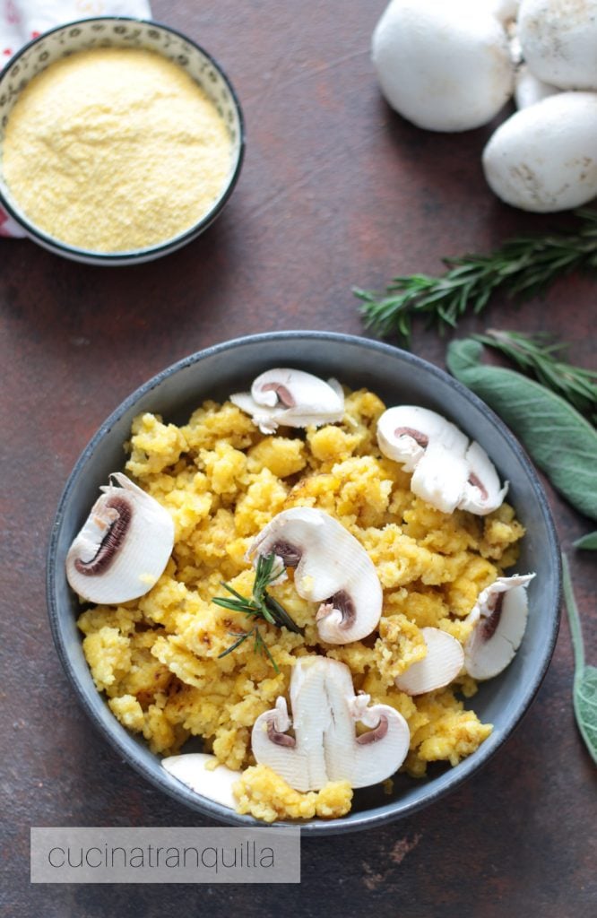 Polenta mit frischen Pilzen, ein Rezept, um übrig gebliebene oder kalte Polenta zu verwerten.