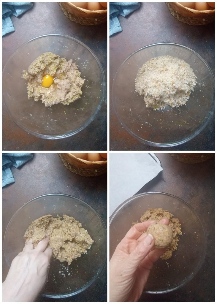 • Füge das Ei hinzu, das restliche Paniermehl und mische die Zutaten miteinander.