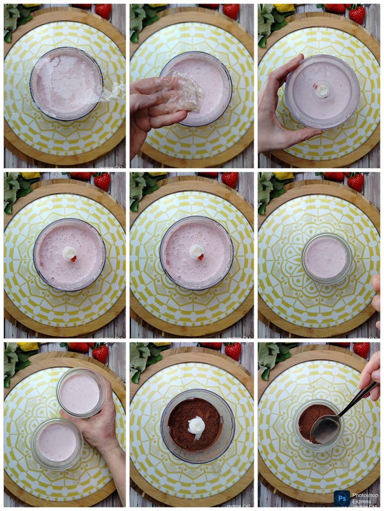 Geben Sie die Mischung in zwei Becher und lassen Sie sie mindestens zwei Stunden im Kühlschrank ruhen.