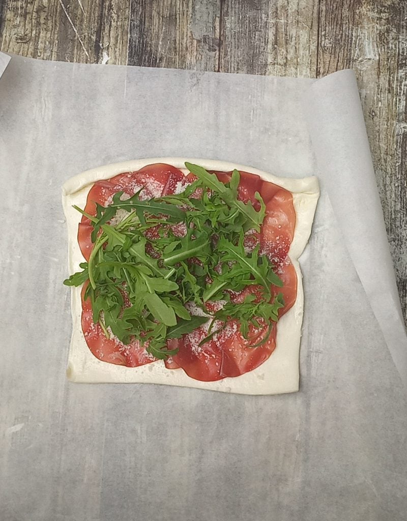 Wir füllen mit vorher gewaschener und getrockneter Rucola.