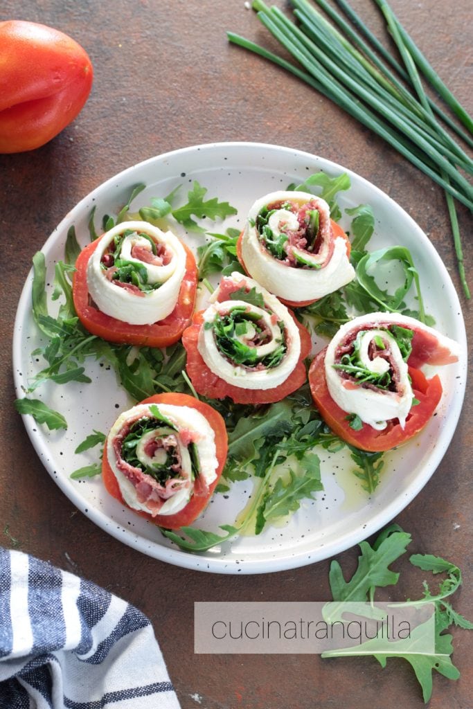 Rollen aus Bresaola und Mozzarella, ein Rezept ohne Kochen, ideal zu jeder Jahreszeit und perfekt im Sommer.