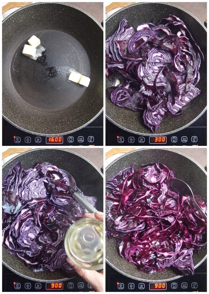 In einer großen Pfanne die Butter schmelzen und den Kohl hinzufügen.