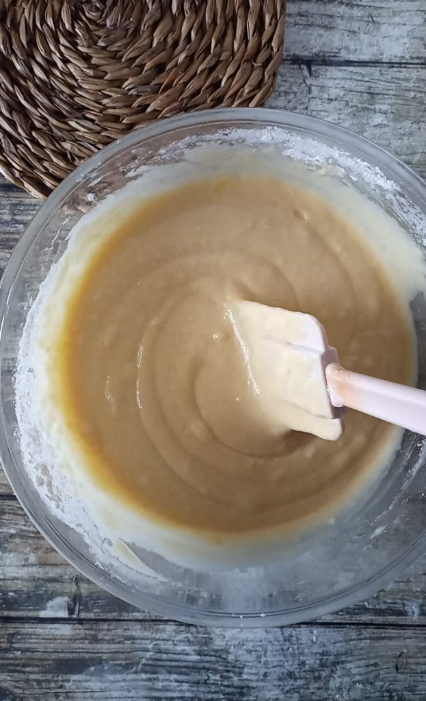 • Wir fahren fort, indem wir das Mehl und das Backpulver hinzufügen.