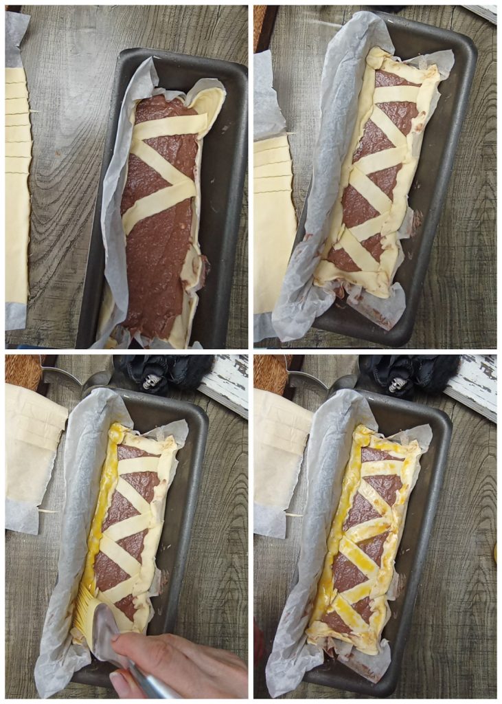 Bestreichen Sie die Oberfläche mit Eigelb und backen Sie es in einem vorgeheizten Umluftofen bei 180° für 30 Minuten.