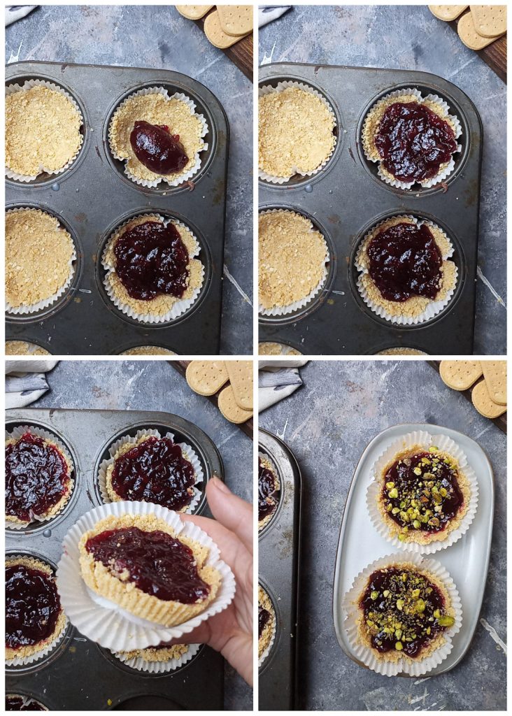 Törtchen mit Marmelade, die praktisch ohne Backen auskommen.