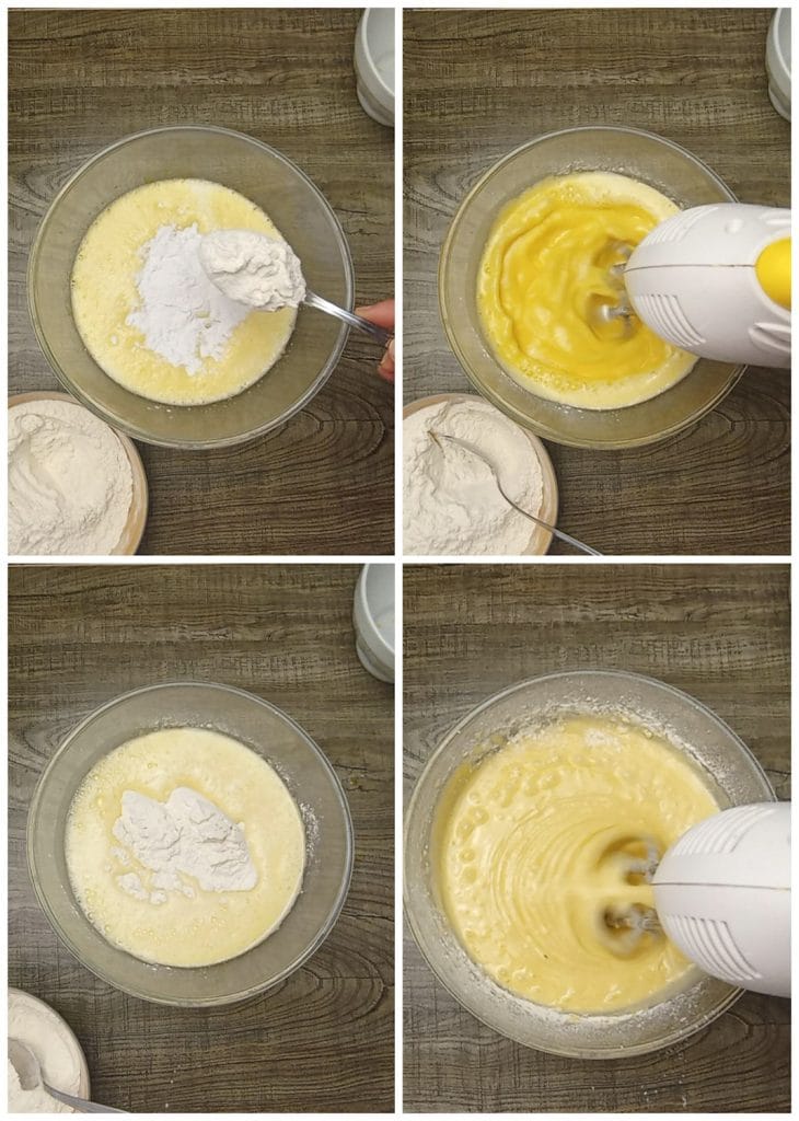 Sobald du einen hellen und schaumigen Teig hast, füge die anderen Zutaten hinzu.