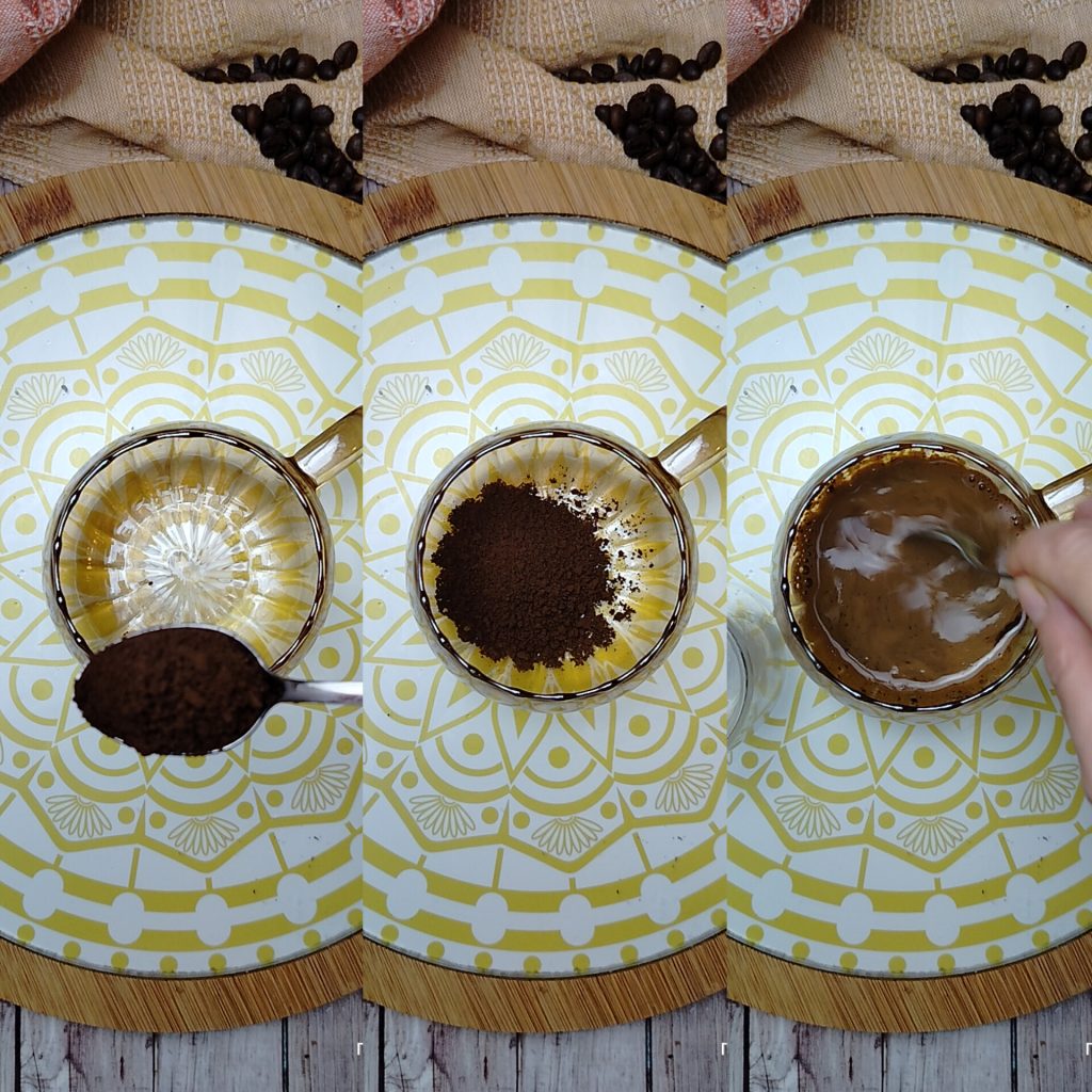 Um die weichen Kaffeeplätzchen ohne Laktose zu machen, lösen Sie zunächst den löslichen Kaffee in der erwärmten Reismilch auf, indem Sie ihn umrühren.