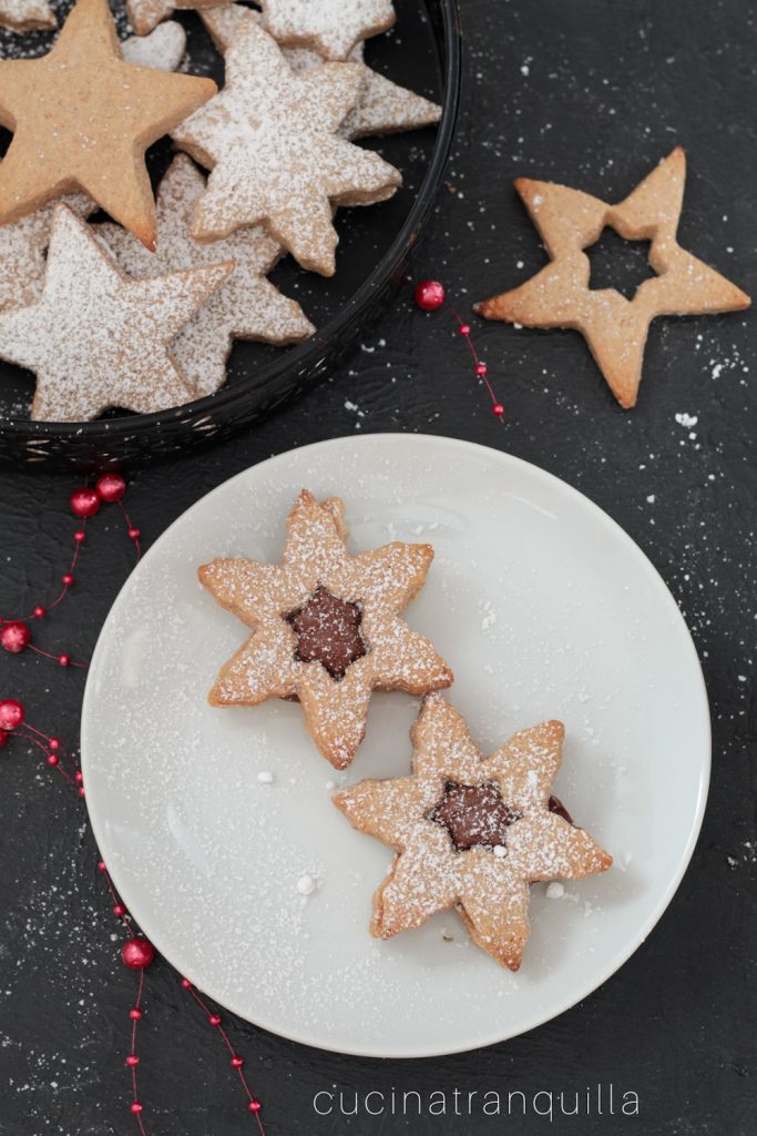 Mit kleinen dekorierten Ausstechformen können wir einige der Plätzchen auch vor dem Backen „durchstechen“, um die klassischen „Ochsenaugen“ zu schaffen, die sich perfekt mit Cremes und Marmeladen füllen lassen.