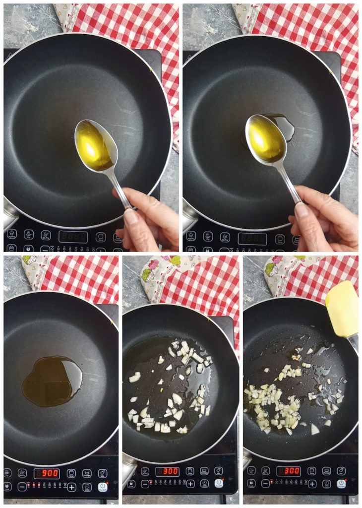 • Geben Sie das native Olivenöl extra in eine 24 cm Antihaftpfanne.