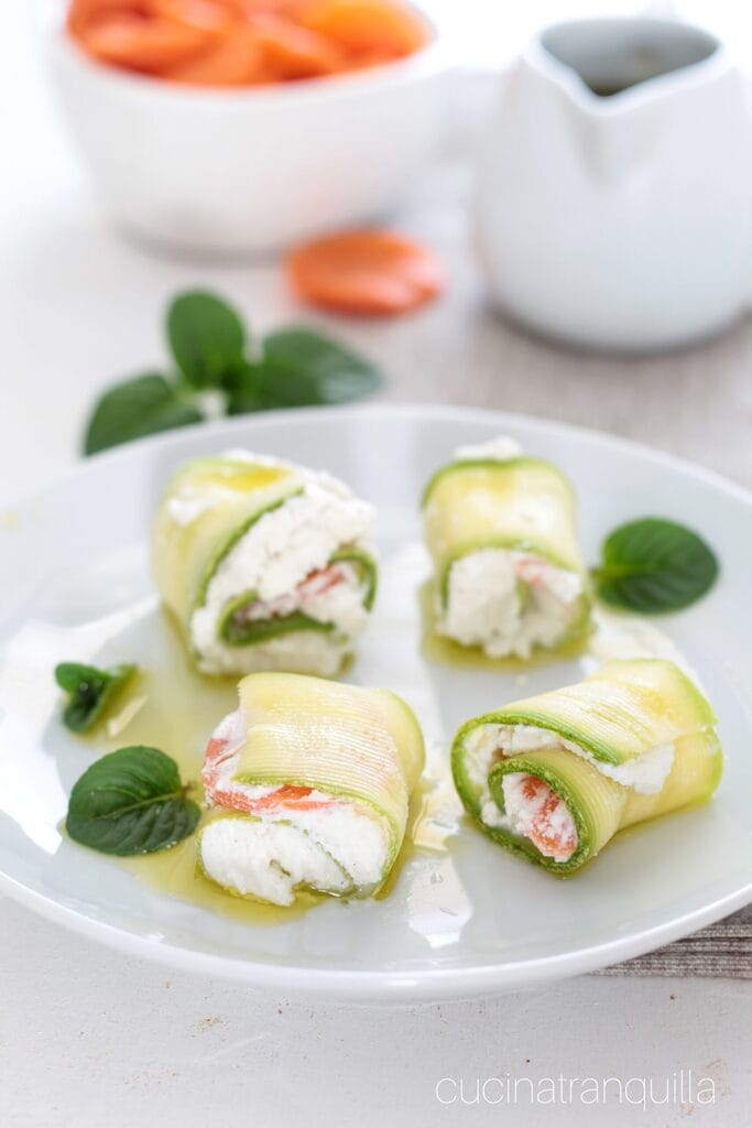Sie können die Zucchini- und Ricotta-Röllchen auch einige Stunden vorher zubereiten und bis zum Verzehr im Kühlschrank, mit Frischhaltefolie abgedeckt, aufbewahren.